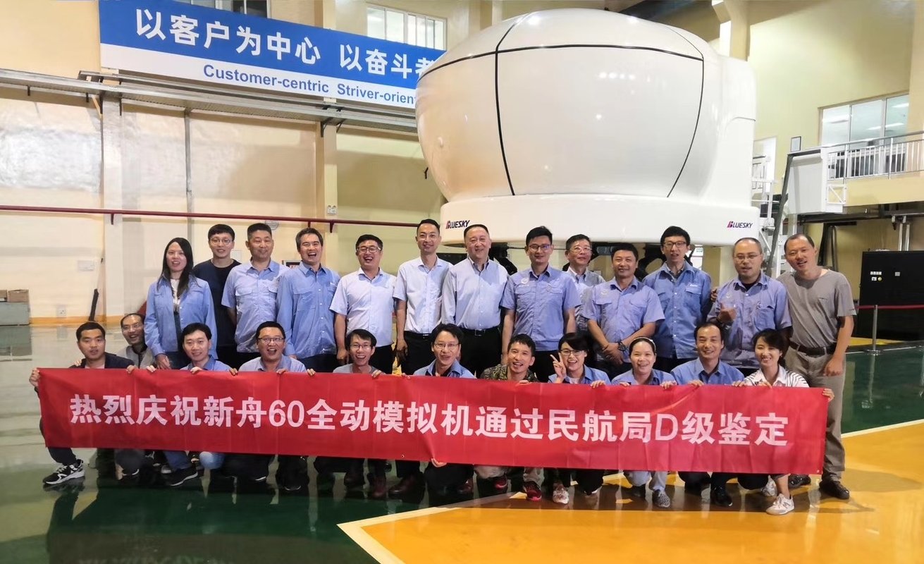 北京蓝天先后成功研制了国内首台飞行模拟器、国内首台固定翼飞机模拟器、国内首台直升机模拟器、国内首台C级模拟机、国内首台完全自主知识产权D级模拟机,承担了中国商飞ARJ21、C919、CR929以及航空工业西飞新舟60、新舟600等国产民机飞行试验平台、工程模拟机和高等级全动模拟机的研制,承制了空军、海军、陆军、武警的多款固定翼飞机和直升机模拟器,向亚洲、非洲、南美洲等10余个国家和地区出口了数十台大型飞行模拟训练设备,是行业内历史最悠久,技术实力最强,生产交付型号和数量最多的企业。