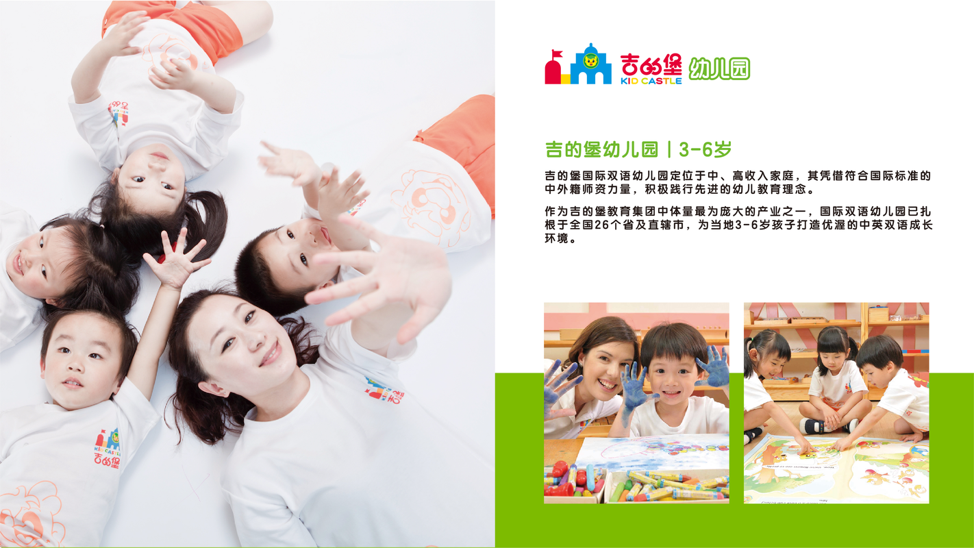 吉的堡,成立于1986年,2001年进驻上海,三十多年的不懈耕耘,吉的堡品牌现在已覆盖31个省、自治区、直辖市,150个城市拥有吉的堡幼儿园,吉的堡英语成长中心1000余所,影响200000个学生家庭。 吉的堡教育集团秉持着“优质教育”的理念,在严肃的学习与快乐的游戏之间搭起了一座桥梁,全方位打造2-18岁菁英学习计划,让孩子从快乐学习中落实语言基础,从生活教育中落实品格能力,开启孩子国际视野,成就孩子大未来!吉的堡的每位成员都深信,优质教育是孩子一生的财富,在优质教育的灌溉下,任何小树苗都将蓬勃成长成绿荫蔚然的参天大树。 现陕西省拥有直营幼儿园50所,直营少儿英语成长中心14所,直营亲子早教中心6所。员工人数超过3000人,是陕西省最具影响力的幼教品牌!
