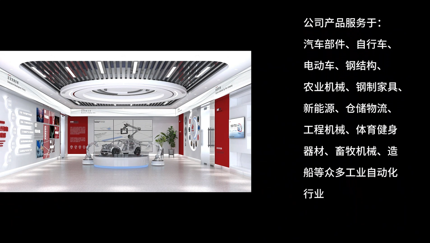 公司在自动化及工业机器人领域掌握核心技术以及丰富的项目集成经验,拥有发明专利等相关知识产权五十余项。公司专业研发、生产、销售工业机器人及配套系统,机器人产品包含焊接、切割、冲压、搬运、码垛、打磨、喷涂、装配等各类应用领域;同时为客户提供稳定、可靠及高性价比的技术方案设计、周边设备配套、机器人应用技术培训、零部件销售及售后服务等整体解决方案。 公司是国家高新技术企业,与国内多家自动化研究所合作,致力于为制造型企业提高生产效率,降低综合成本,努力实现‘无人’工厂,为用户和行业创造价值。 公司产品服务于汽车零部件、自行车、电动车、钢结构、农业机械、钢制家具、新能源、仓储物流、工程机械、体育健身器材、畜牧机械、造船等众多工业自动化应用行业。