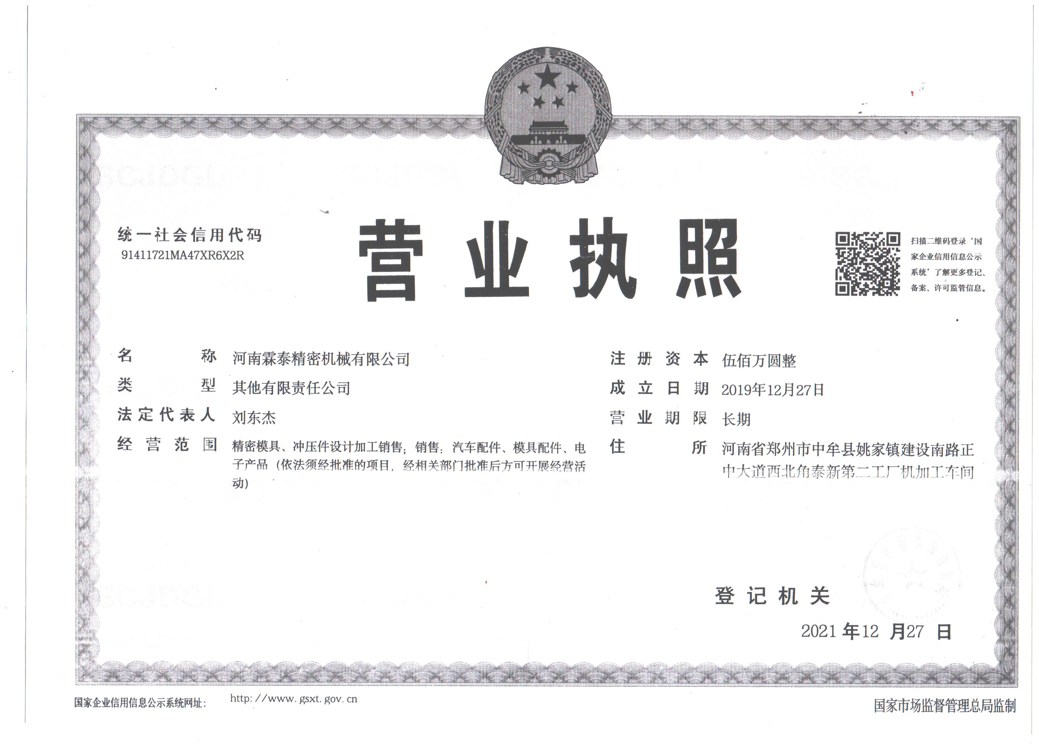 河南霖泰精密机械有限公司位于河南省郑州市中牟县建设南路正中大道西北角泰新第二工厂院内,成立于2019年12月,是一家集合精密模具设计、制作、及高精密零部件加工,装配于一体的民营企业,公司总投资500万人民币,工厂占地面积2千多平方米,员工38人,模具设计师5名,模具师5名。公司依世界先进的加工设备、训练有素的员工团队,严格完善的管理体制为客户提供从模具设计、制造、高精密零部件加工到物流一站式服务。