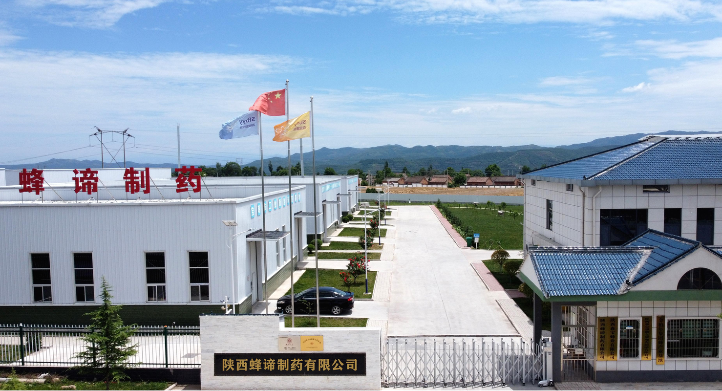 陕西蜂谛制药有限公司位于陕西省千阳县南寨高速路出口。公司占地面积50余亩,建设面积12000平米,其中包括2座现代化生产车间、1座十万级净化车间、 2座标准化仓库、1栋综合办公楼、1个蜜蜂科普馆、1个现代化检测检验中心,年蜂产品加工能力可达到5000吨以上。公司按照GMP要求建有完备的质量管理体系,对生产、检验、存储、销售每个环节严格把控,保证产品出厂合格率百分之百。同时,公司被评为宝鸡市“工业旅游示范基地”、 “宝鸡市龙头企业”,被宝鸡市科技局授予“星创天地”。公司生产的药用蜂蜜、蜂胶填补了西北地区蜂产品作为药品生产的空白,其中药用蜂胶生产线成为国内首家获得GMP符合性认定的生产线。