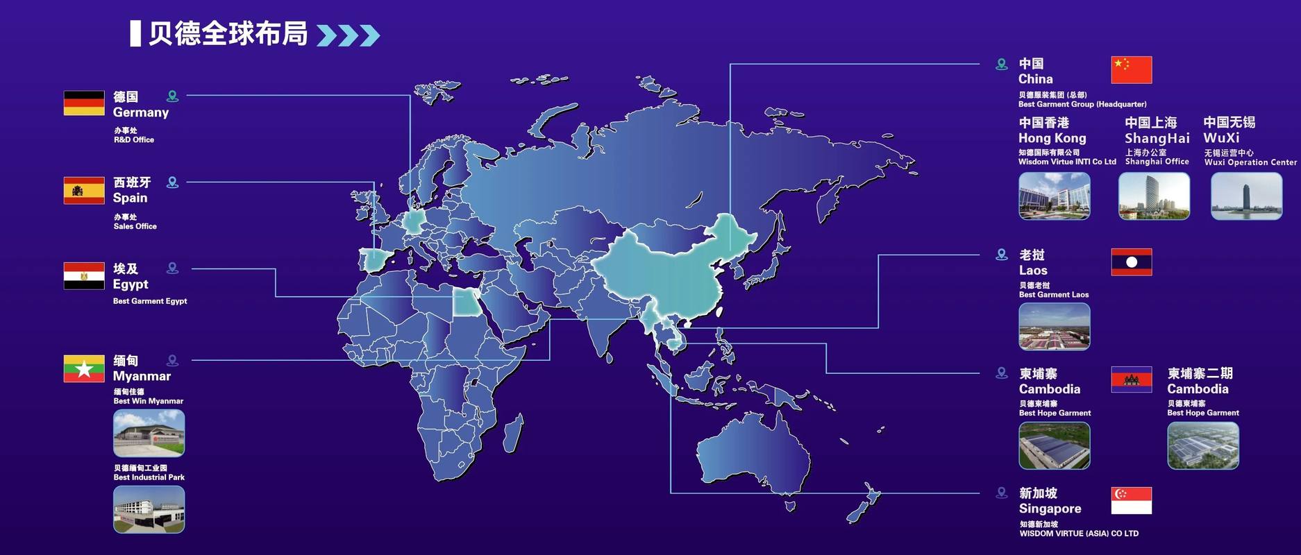 贝德服装集团股份有限公司坐落于“中国服装名镇”——江阴市祝塘镇。集团创始于2001年,是一家拥有先进技术与设备的服装企业。目前拥有九家子公司,国内外员工8000多名,年生产针织服装超过1亿件。 贝德服装集团与众多国际知名的快时尚品牌建立了长期合作关系。 贝德国内工厂先后引进国际先进的自动绘图及制版系统、自动吊挂流水线、格博自动裁床、川上全自动拉布机、自动电脑缝纫设备等,并成功导入ERP、ETS、MES等智能化管理系统,实现了高度的数据化和信息化管理。 在实施标准化管理的基础上,集团通过了多项管理体系认证:IS09001、IS014001、OHSAS18001、BSCI、GOTS、Oeko-Tex国际认证、并且参与Made in Green、Detox绿色和平等项目。集团先后获得“江苏省服装智能示范车间”、“江苏省五星级数字企业”、“江苏省两化融合试点企业”、“江苏省信用管理示范企业”、“江苏省管理创新优秀企业”等荣誉称号。 作为中国针织工业协会副会长单位,贝德服装集团积极响应国家“一带一路”和相关政策的倡议、指引,走出国门,增强企业国际竞争力。 科技创新是贝德发展的***动力,近年来贝德与江南大学产学研合作成立了“贝德纺织服装研究院”,双方在技术创新、面料开发、产品设计、人才引育、知识产权申报和科研平台建设等方面开展了全面合作,以此不断提高自身的自主创新能力及竞争力。 贝德服装集团自成立以来,始终秉承着“为客户创造价值,为员工创造平台,为社会创造财富”的企业使命,不遗余力投身公益,矢志不渝回馈社会。并以“立足江阴、走向世界”的宗旨,不断做强做大!