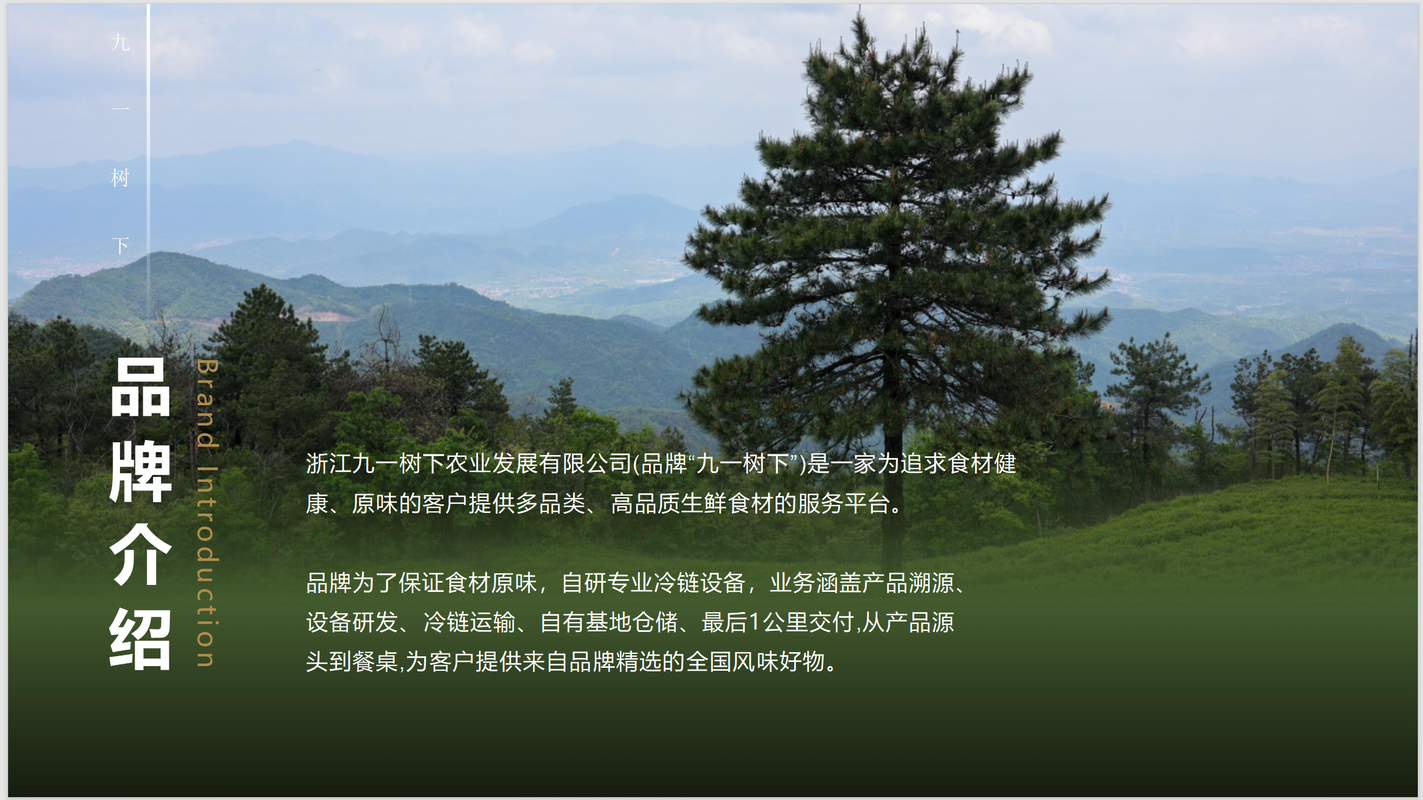 九一树下是一家专注健康原味生鲜的食材管家平台,深入全国优质产地,只为甄选真正有差异的好食材——春采山野鲜果,夏捞深海水产,秋收牧场好肉,冬藏时令珍味。每一颗水果、每一块肉、每一条鱼,都经过严苛标准筛选,确保可溯源、有风味、具特色。依托自研冷链系统,全程锁鲜护味。再通过细致可靠的配送网络,将带着土地气息与季节温度的自然风味,稳稳送达餐桌。在这里,食材不止于新鲜,更讲究本真、时节与来处。
